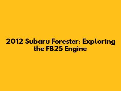 Hey guys! Today, we're diving deep into the heart of the 2012 Subaru Forester – the FB25 engine. If you're a Forester owner or just a car enthusiast, understanding this engine is crucial. We'll cover everything from its specs and performance to common issues and maintenance tips. Let's get started!