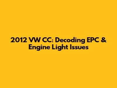 Hey there, fellow car enthusiasts! Ever been cruising along in your sleek 2012 Volkswagen CC, and suddenly, those dreaded warning lights pop up on your dashboard? Specifically, the EPC light (Electronic Power Control) and the check engine light? Yeah, we've all been there! It can be a seriously stressful moment, leaving you wondering what's going on under the hood and if you're about to face some hefty repair bills. But don't panic! Let's dive into what these lights mean for your 2012 VW CC, explore potential causes, and see what you can do to get your car back in tip-top shape. This guide is crafted to help you understand your car better, whether you're a seasoned mechanic or a total newbie. So, let's get started!