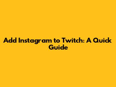 Add Instagram To Twitch: A Quick Guide