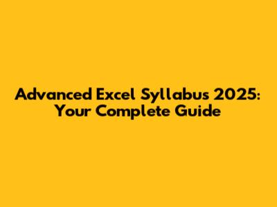 Advanced Excel Syllabus 2025: Your Complete Guide