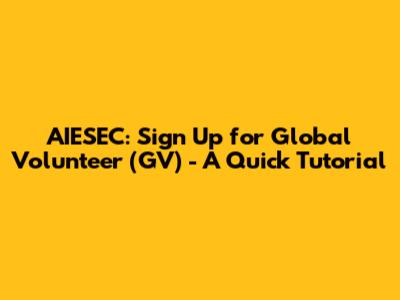 Hey guys! Are you looking to make a difference in the world while gaining invaluable experience? Then you've probably heard of AIESEC and their Global Volunteer program. If you're wondering how to navigate the sign-up process, you've come to the right place! This tutorial will guide you through each step, ensuring you're well-prepared to embark on your AIESEC adventure. Let's dive in and explore how you can become a Global Volunteer and contribute to meaningful projects around the globe. Joining AIESEC's Global Volunteer program is not just about volunteering; it's about personal growth, cultural immersion, and creating a lasting impact. So, grab your laptop, and let's get started!