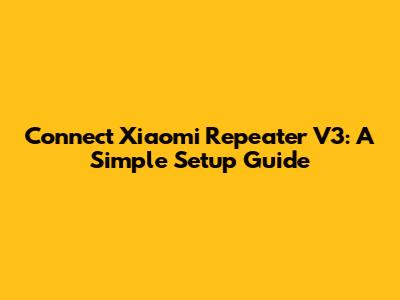 Connect Xiaomi Repeater V3: A Simple Setup Guide