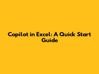 Copilot In Excel: A Quick Start Guide