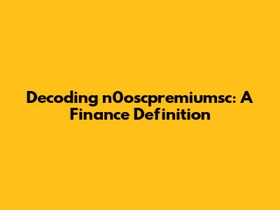 Decoding N0oscpremiumsc: A Finance Definition