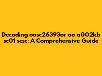 Decoding Oosc26393or Oo A002kb Sc01 Scsc: A Comprehensive Guide