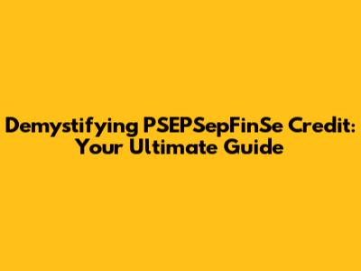 Demystifying PSEPSepFinSe Credit: Your Ultimate Guide
