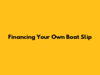 Financing Your Own Boat Slip