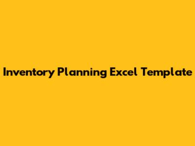 Free Inventory Planning Excel Template