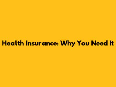 Health Insurance: Why You Need It