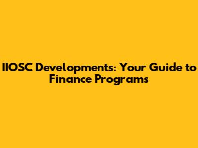 IIOSC Developments: Your Guide To Finance Programs