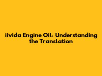 Iivida Engine Oil: Understanding The Translation