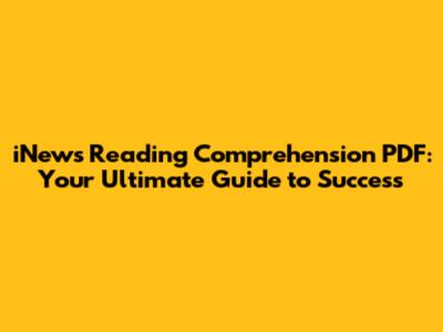 INews Reading Comprehension PDF: Boost Your Skills