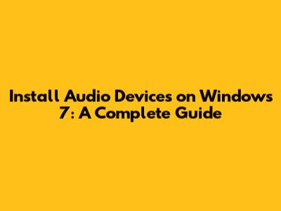 Install Audio Devices On Windows 7: A Complete Guide