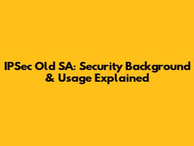 IPSec Old SA: Security Background & Usage Explained