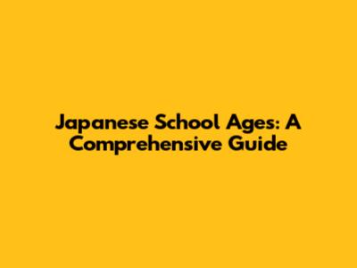 Japanese School Ages: A Comprehensive Guide