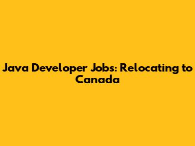 Java Developer Jobs: Relocating To Canada