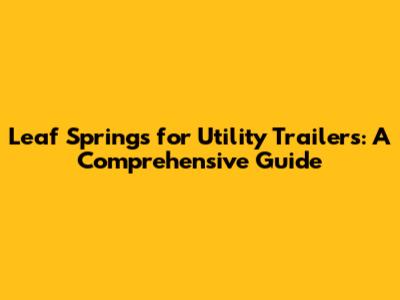 Leaf Springs For Utility Trailers: A Comprehensive Guide