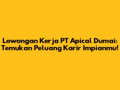 Lowongan Kerja PT Apical Dumai: Temukan Peluang Karir!