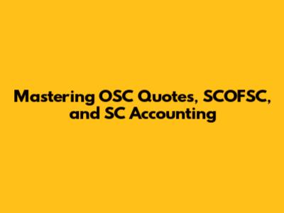 Mastering OSC Quotes, SCOFSC, And SC Accounting