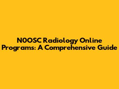 N0OSC Radiology Online Programs: A Comprehensive Guide