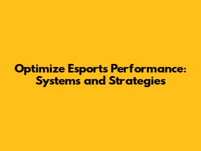 Optimize Esports Performance: Systems And Strategies
