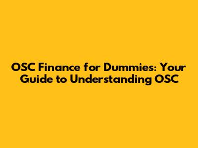 OSC Finance For Dummies: Your Guide To Understanding OSC