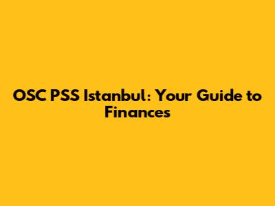 OSC PSS Istanbul: Your Guide To Finances
