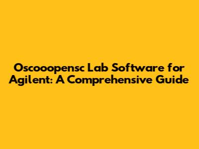 Oscooopensc Lab Software For Agilent: A Comprehensive Guide