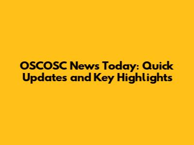 OSCOSC News Today: Quick Updates And Key Highlights