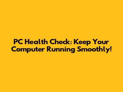 PC Health Check: Keep Your Computer Running Smoothly!