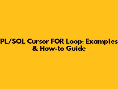 PL/SQL Cursor FOR Loop: Examples & How-to Guide