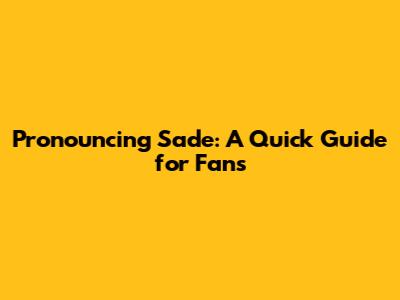 Pronouncing Sade: A Quick Guide For Fans
