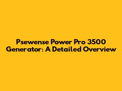 Psewense Power Pro 3500 Generator: A Detailed Overview