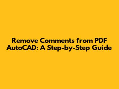 Remove Comments From PDF AutoCAD: A Step-by-Step Guide