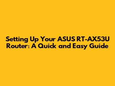 Setup ASUS RT-AX53U Router: A Quick And Easy Guide