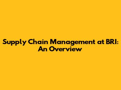 Supply Chain Management At BRI: An Overview