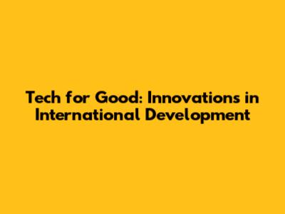 Tech For Good: Innovations In International Development