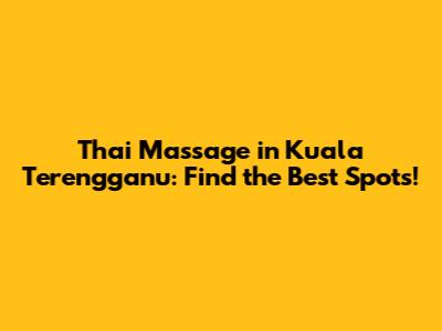 Thai Massage Kuala Terengganu: Find The Best Spots!