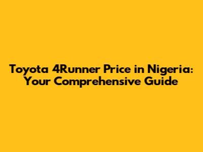 Toyota 4Runner Price: Your Guide To Buying In Nigeria