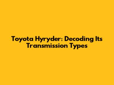 Hey there, gearheads! If you're cruising around, thinking about snagging a Toyota Hyryder, or just curious about what makes this SUV tick, then you're in the right place. Today, we're diving deep into the heart of the Hyryder: its transmission. Understanding the transmission type is crucial because it significantly impacts how the car drives, its fuel efficiency, and the overall driving experience. So, buckle up as we unravel the mysteries of the Toyota Hyryder's transmission options.