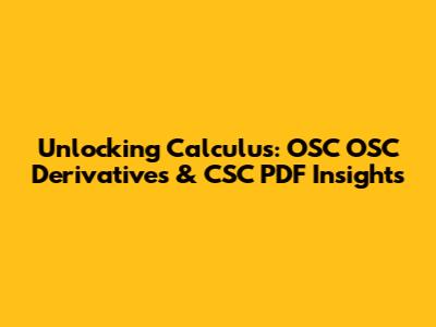 Unlocking Calculus: OSC OSC Derivatives & CSC PDF Insights