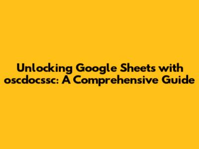 Unlocking Google Sheets With Oscdocssc: A Comprehensive Guide