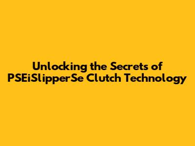 Unlocking The Secrets Of PSEiSlipperSe Clutch Technology