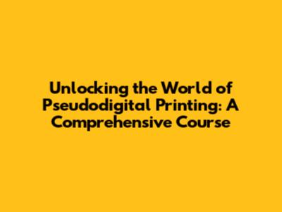 Unlocking The World Of Pseudodigital Printing: A Comprehensive Course