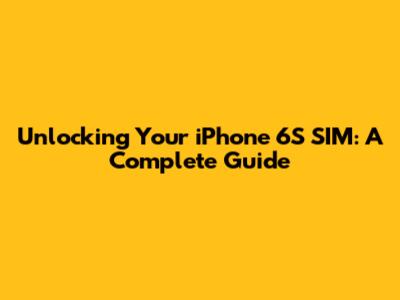 Unlocking Your IPhone 6S SIM: A Complete Guide