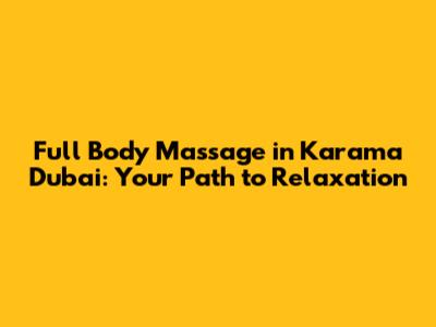 Hey guys, if you're looking for the ultimate relaxation experience in the heart of Dubai, you've landed in the right place! We're diving deep into the world of full body massages in Karama, Dubai, a haven for those seeking to melt away stress, ease muscle tension, and emerge feeling completely refreshed. Karama is known for its vibrant atmosphere and diverse offerings, and that includes some fantastic options for massage therapy. So, buckle up, because we're about to explore everything you need to know about getting the perfect full body massage in this bustling neighborhood. We will cover the different types of massages available, where to find them, what to expect during your session, and how to make the most of your experience. Trust me, after reading this, you'll be well on your way to booking your own little slice of paradise!
