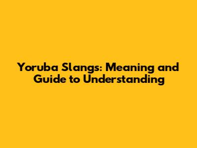 Yoruba Slangs: Meaning And Guide To Understanding